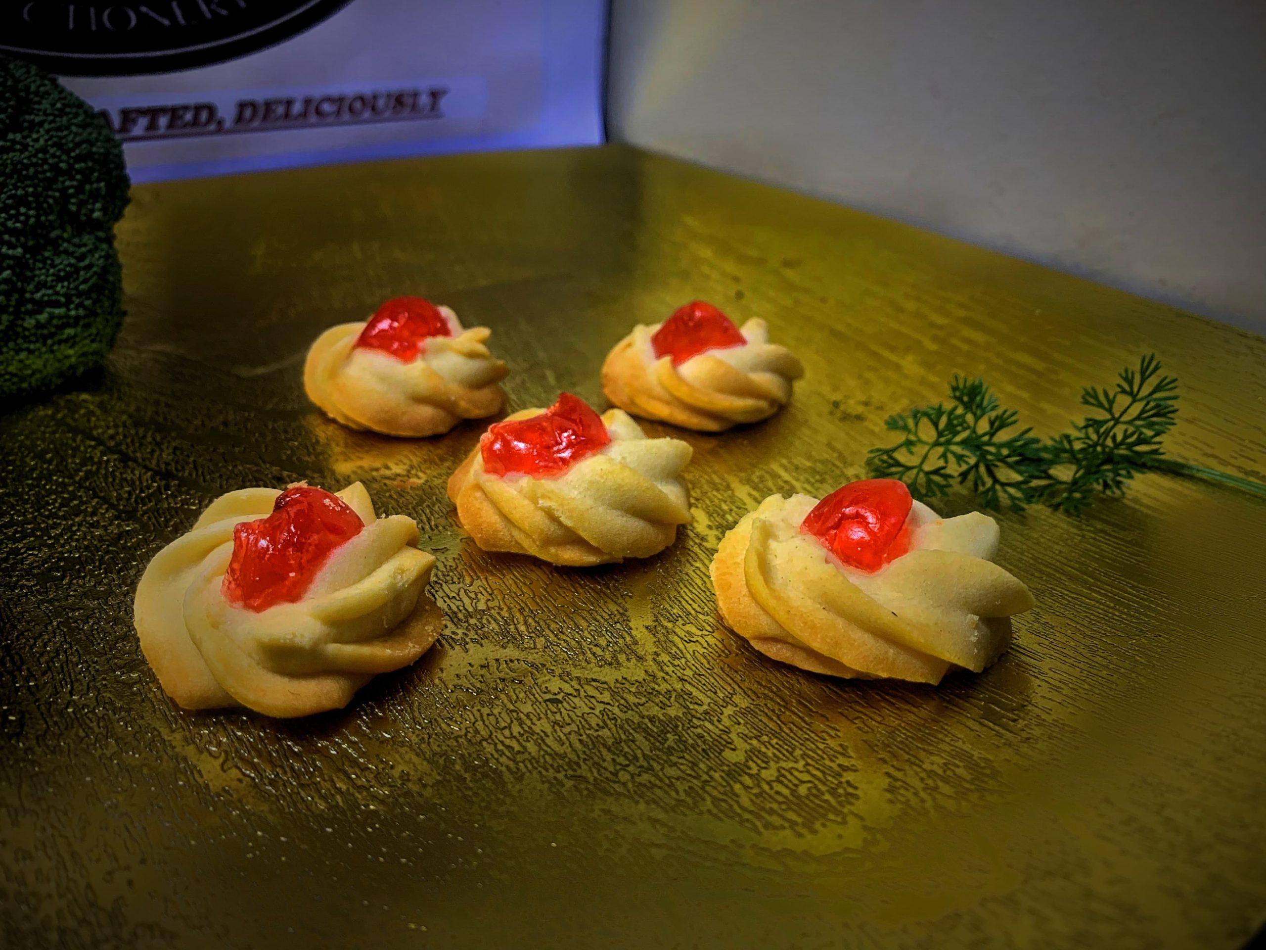 Our Cherry Biscuits are golden, buttery shortbread-style cookies studded with sweet, glazed cherries. They’re delicately crisp, beautifully fragrant, and perfect for gifting, tea-time, or festive occasions.