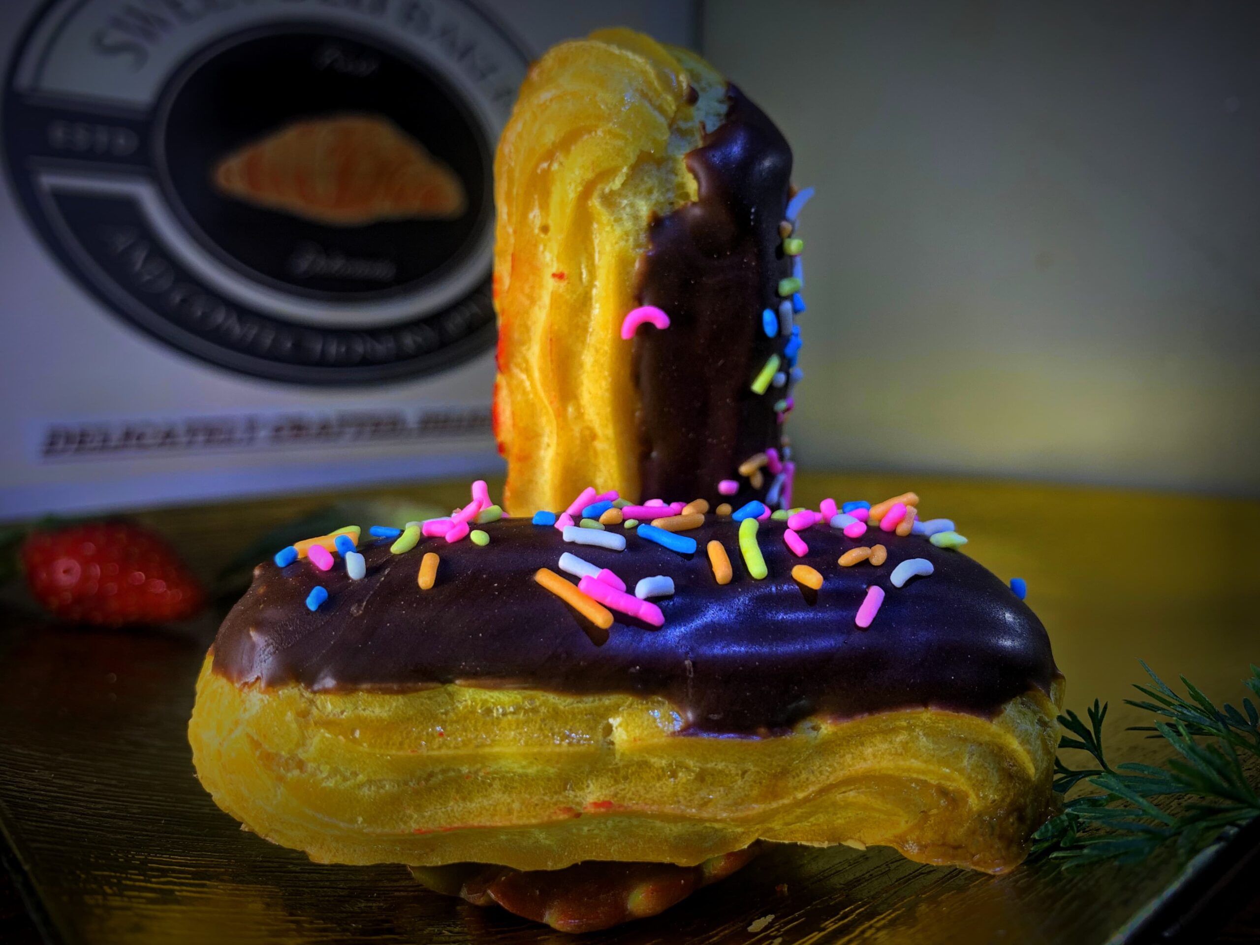 Our Éclairs are handcrafted with delicate choux pastry, filled with rich vanilla or chocolate custard, and topped with a smooth chocolate glaze. At Sweet Deli Bakery & Confectionery, each éclair is baked fresh and finished with care for a dessert that’s elegant and satisfying.