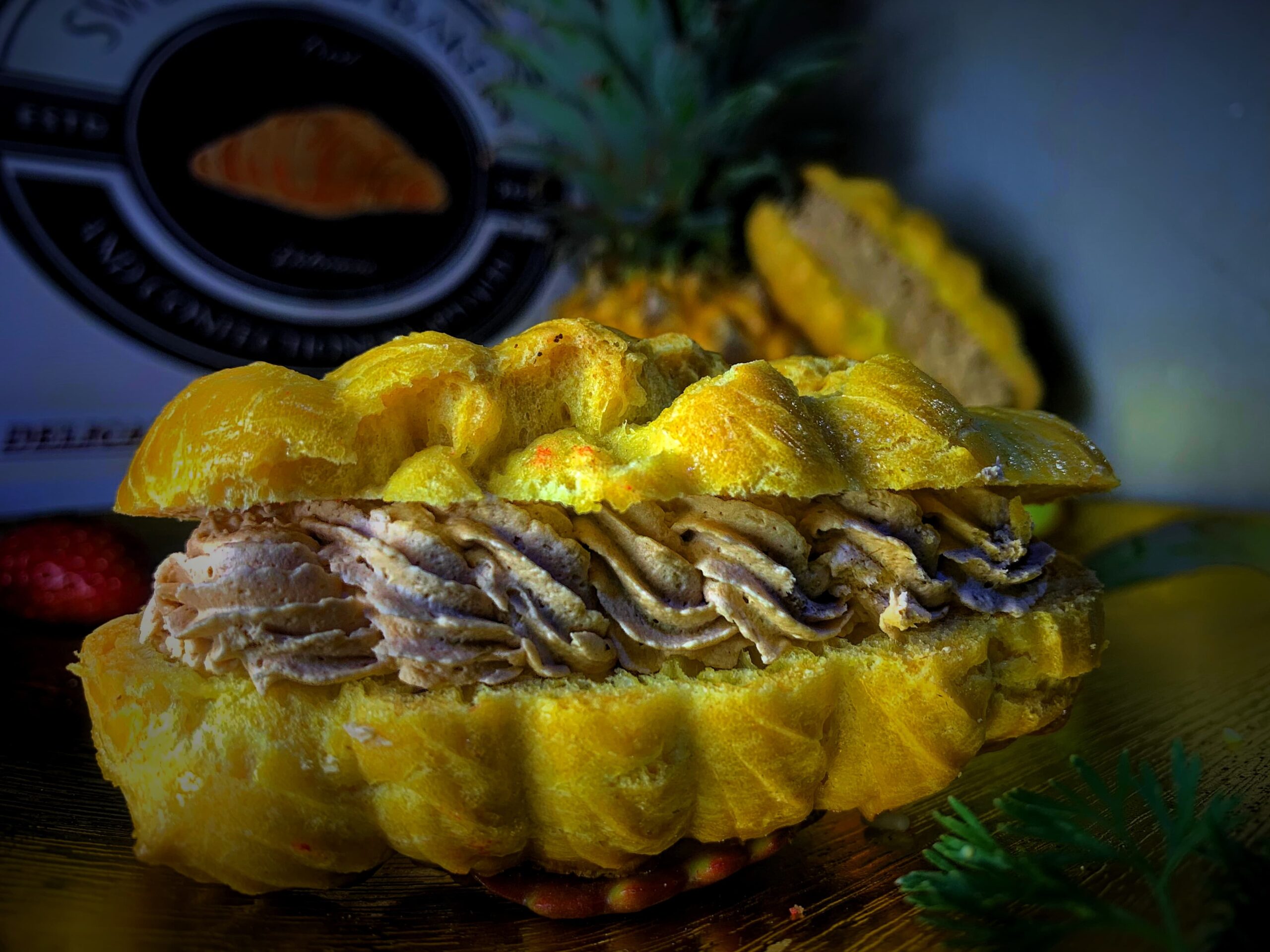 Our Paris-Brest is a ring-shaped choux pastry filled with a luscious hazelnut praline cream and topped with flaked almonds and a dusting of icing sugar. Crisp on the outside, airy inside, and rich with nutty flavor — it’s a sophisticated treat with timeless appeal.