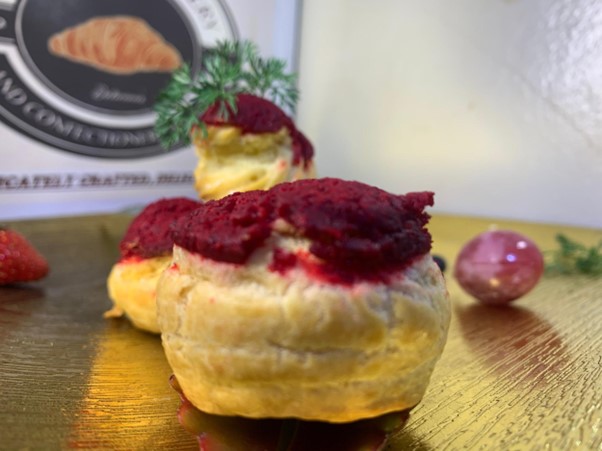 Our Strawberry Profiteroles are delicate choux pastry puffs filled with smooth vanilla cream or whipped strawberry mousse, then topped with a strawberry glaze or drizzle of fresh strawberry coulis. Finished with real strawberry slices for a beautiful and refreshing treat.